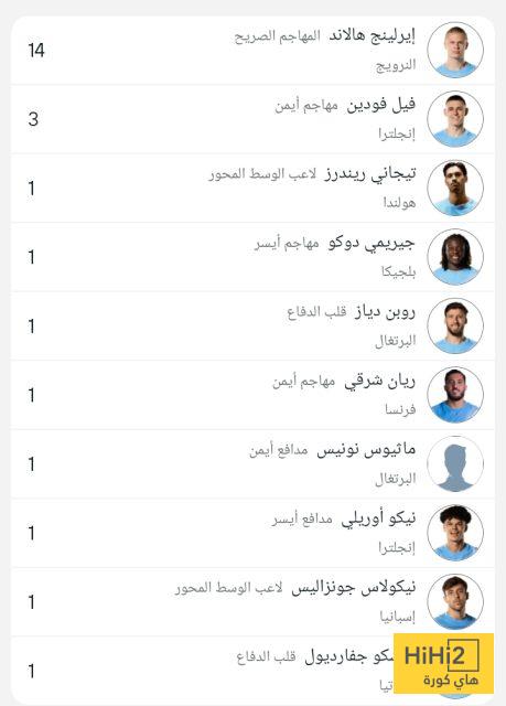 وجاءت قائمة هدافي السيتي في البريميرليغ كالتالي :