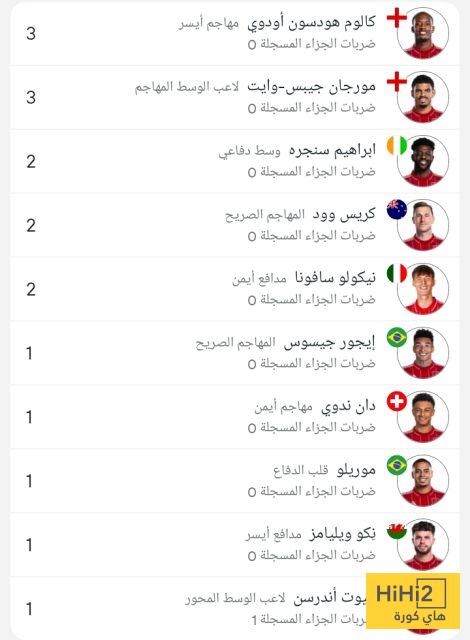 وجاءت قائمة هدافي نوتنغهام كالتالي :